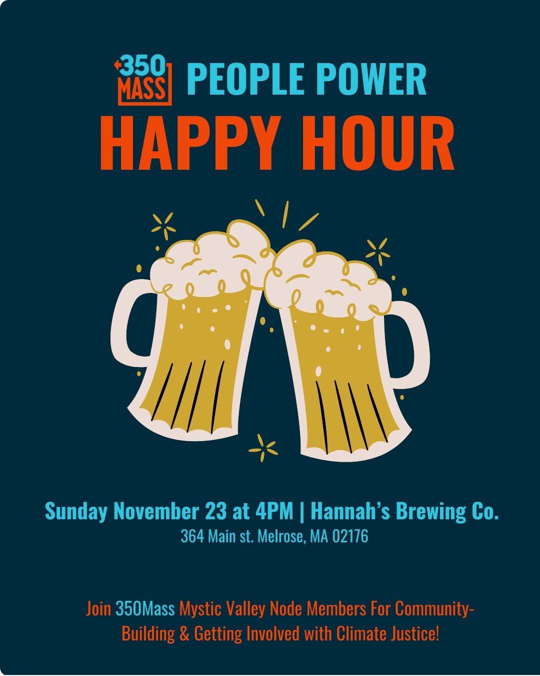 Join the 350 Mass Mystic Valley Node at Hannah's Brewery in Melrose at 4pm on Sunday Nov 23rd.