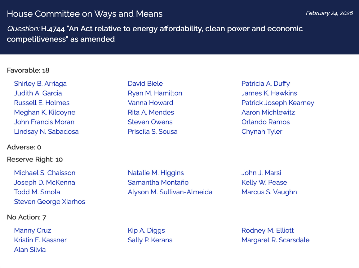 Rep. Uyterhoeven took this opportunity for a roll call to get every Representative on the record whether they supported or opposed the Mass Save cut. In the end, 17 voted to keep the funding while 137 voted for the cut. If you approve or disapprove of how your legislator voted, let them know!